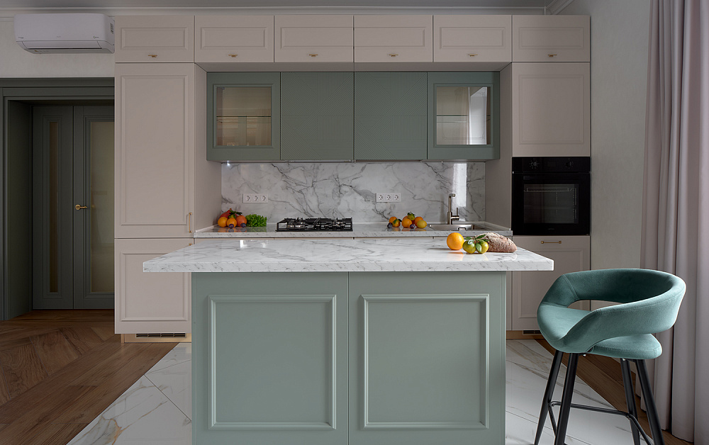 Размеры, оттенок и структура покрытия кухни выбираются на индивидуальное усмотрение заказчика согласно его вкусам и общей интерьерной концепции жилища.