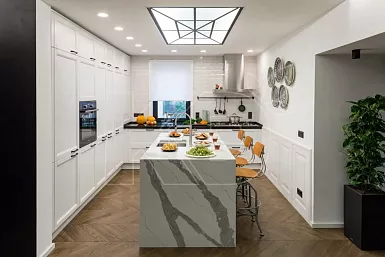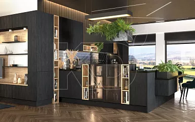 • Кроме того, шпонированные фасады демонстрируют высокую устойчивость к внешним факторам и легко поддаются реставрации. Небольшие царапины можно без труда зашлифовать, а крупные дефекты скрыть с помощью шпоновой заплатки, что позволит кухне сохранить безупречный внешний вид на протяжении долгого времени.