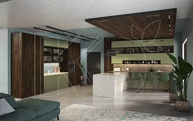 • Кроме того, кухня из шпона излучает ощущение солидности и элегантности. Эта характеристика добавляет нотку класса в помещение для приготовления пищи, повышая его общую эстетическую привлекательность.
