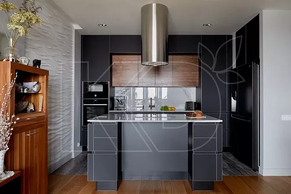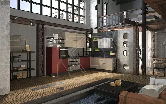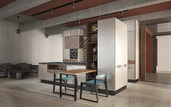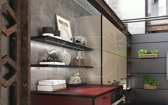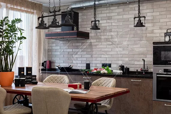 Это два базовых цвета, которые прекрасно друг с другом гармонируют. На сером фоне можно разместить кухонный гарнитур в песочных тонах. Чтобы не переборщить с декором, потолки лучше оставить без отделки, а стены и пол сделать бетонными. Если хочется добавить акцент, то на одной из стен можно сделать кладку из светлого кирпича. Этого будет достаточно.