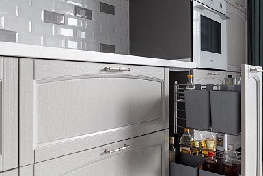 Откажитесь от идеи сэкономить на ручках. Дешевая фурнитура сделает любой гарнитур малопривлекательным. А вот качественные ручки из металла, дерева или высокопрочного пластика придадут фасадам солидности.
