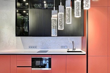 Современные бюджетные кухни на заказ от производителя способны преобразить любое пространство. Особенно если использовать искусственное освещение отдельных зон. Установить подсветку можно над рабочей поверхностью и варочной панелью. Очень эффектно выглядят открытые полки и остекленные шкафчики с подсветкой.
