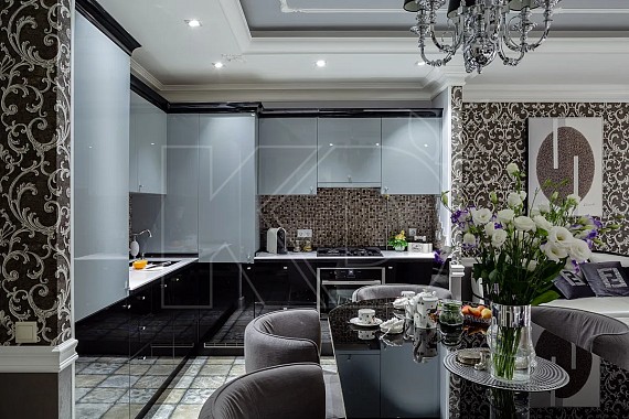 • Кроме солидного внешнего вида, подобные элементы отражают свет и зрительно увеличивают помещение.