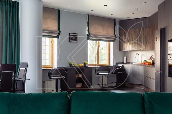 Если при создании интерьера хозяева придерживались нейтральной гаммы, то им стоит подобрать шторы в цвет мебели. Они гармонично дополнят кухню и не перетянут всё внимание на себя.