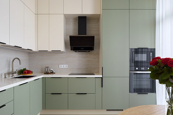 Столешницы из кварца или камня долговечны и не боятся механических повреждений. ЛДСП — хороший вариант, если нужно оптимизировать бюджет, но при этом сохранить внешний вид. Дизайнер поможет подобрать сочетание фактур, чтобы кухня с вашим дизайном выглядела дорого и современно.