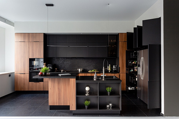 Иногда стандартные модульные кухни это не лучший вариант. Особенно это касается небольших помещений, нестандартных планировок и объединённых пространств. В таких случаях индивидуальный заказ позволяет максимально эффективно использовать площадь и создать кухню на заказ по индивидуальным размерам, идеально вписывающуюся в интерьер.