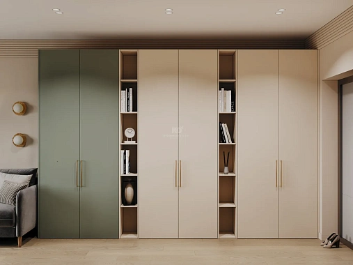 Благодаря этому планировка шкафа становится более гибкой, а интерьер визуально цельным. Это особенно заметно, когда нужно установить шкаф у стены, встроить его в нишу или создать единый блок от пола до потолка.