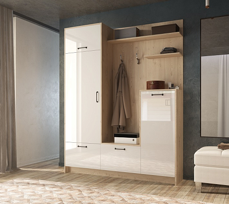 - Сбалансированным сочетанием открытых полок и закрытых зон.