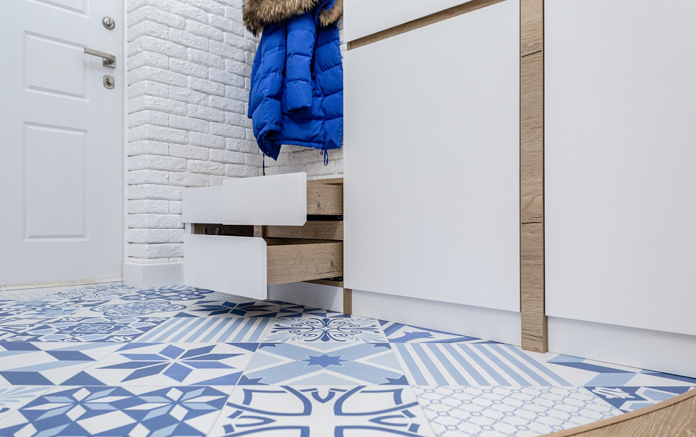 Для наших замечательных клиентов была спроектирована прихожая, в которой царит лаконичность – оригинальный пенал и шкафчик для обуви знают свое место и дело, отлично справляясь с функцией размещения полезных вещей. Встроенный шкаф коридора украшают раздвижные дверцы с оригинальным декором, которые хозяева заказали в бренда «Кухонный Двор». Шкаф-купе для спальни тоже дело рук мастеров нашей бренда, но для этой комнаты выбрана более нежная и спокойная цветовая гамма.