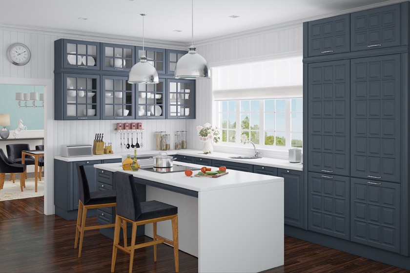 Данная кухня в бело-сером цвете позволяет по-новому взглянуть на привычные черты классической мебели. Современное оформление гарнитура удивительным образом переплетается с традициями прошлых столетий: прямоугольная фрезеровка напоминает филенку классического фасада, в то время как сами фасады выполнены из высококачественной МДФ с покрытием из современного материала — экомембраны.