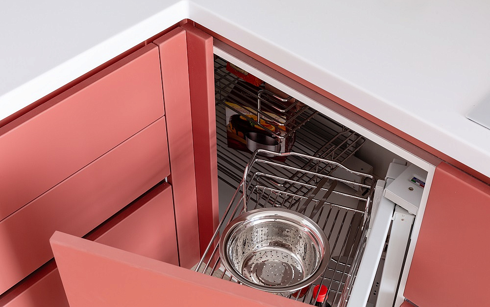 Формы: лаконичны, но рельефны. Вообще, выверенные пропорции – один из главных секретов очарования «Эммы»! Ее второй ярус чуть «утоплен» по сравнению с остальными элементами. Антресоли имеют строго выверенную протяжённость, чтобы сохранять лёгкость всего образа. А скрытые ручки-профили системы «Space Line» дополнительно «вычерчивают» некоторые фасады и «приподнимают» столешницу.