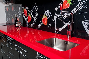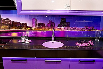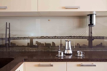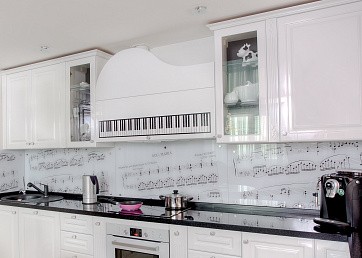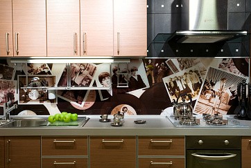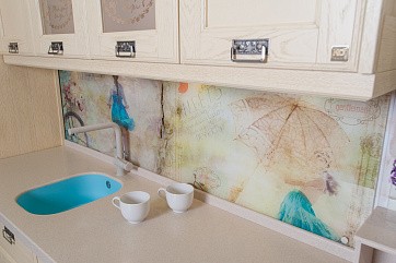 Отличная альтернатива кухонному фартуку из плитки! Оригинальное изображение, перенесенное на внутреннюю поверхность стеклянной стеновой панели с помощью пленки Oracal, добавит кухне определенной тематики и сделает её неповторимой.
