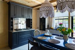 Разделение кухни на «тёмную» и «белую» зоны подарило интерьеру замечательную игру контрастов. Это позволило визуально расширить помещение, но не выбиться из мягкого стиля «кантри». «Дачный Ответ» изначально планировал сделать данную комнату по образу уютного голландского домика, и «Кухонный Двор» помог развить эту концепцию.